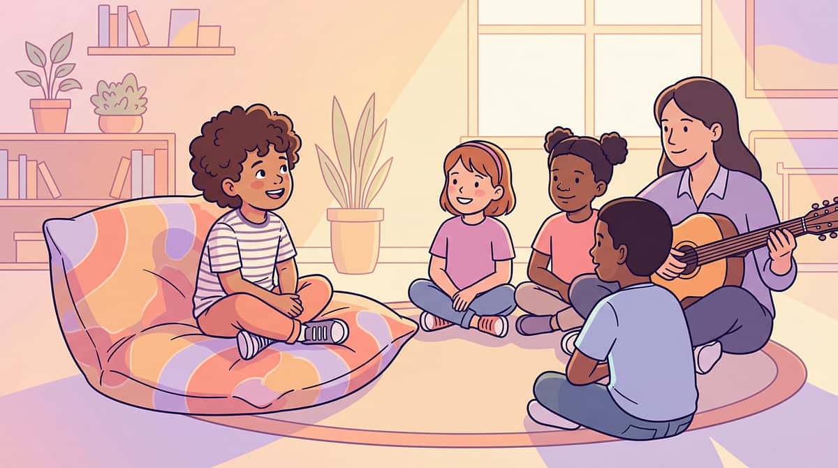 A designated cushion or mat provides clear visual and tactile boundaries, helping children understand where their space begins and ends during group activities.